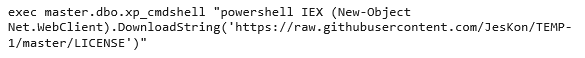 In one 2017 campaign, the threat actors targeted U.S. legal organizations via SQL injection attacks against a third-party software application predominantly used by companies in that sector. The SQL injection string attempted to launch PowerShell via the xp_cmdshell stored procedure. If successful, this command downloaded and executed in memory the PowerShell-Github-Shell script hosted as a seemingly innocuous file on a GitHub repository (see Figure 1). The profile attached to the GitHub repository was created shortly before the campaign commenced. This script can be used to enumerate system information, download files, and run commands using PowerShell or the Windows command prompt.