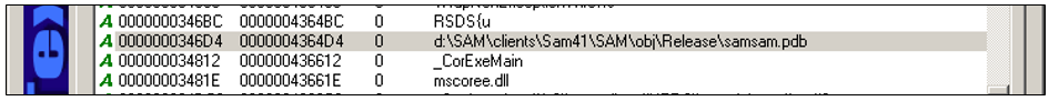 Figure 1. PDB file string for samsam.exe. (Source: SecureWorks)