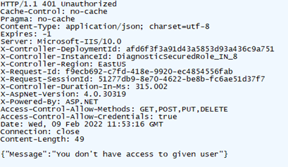 Figure 10. 'You don't have access to given user' response. (Source: Secureworks) -