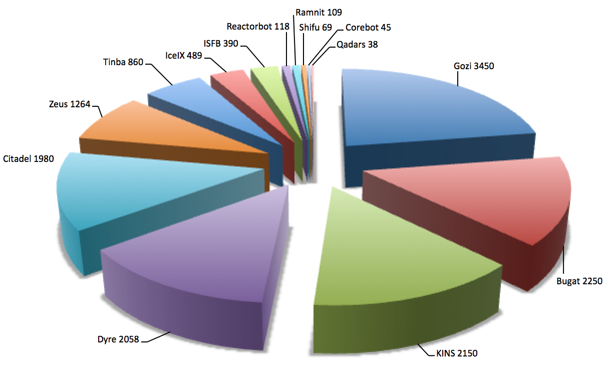 Figure 1. Prevalence of banking botnets in 2015 based on samples analyzed by CTU researchers. (Source: Dell SecureWorks)